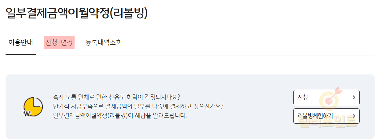 - 금융 > 일부결제금액이월약정(리볼빙)을 클릭합니다.