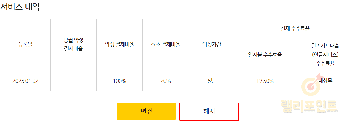 - 해지 버튼을 누릅니다.