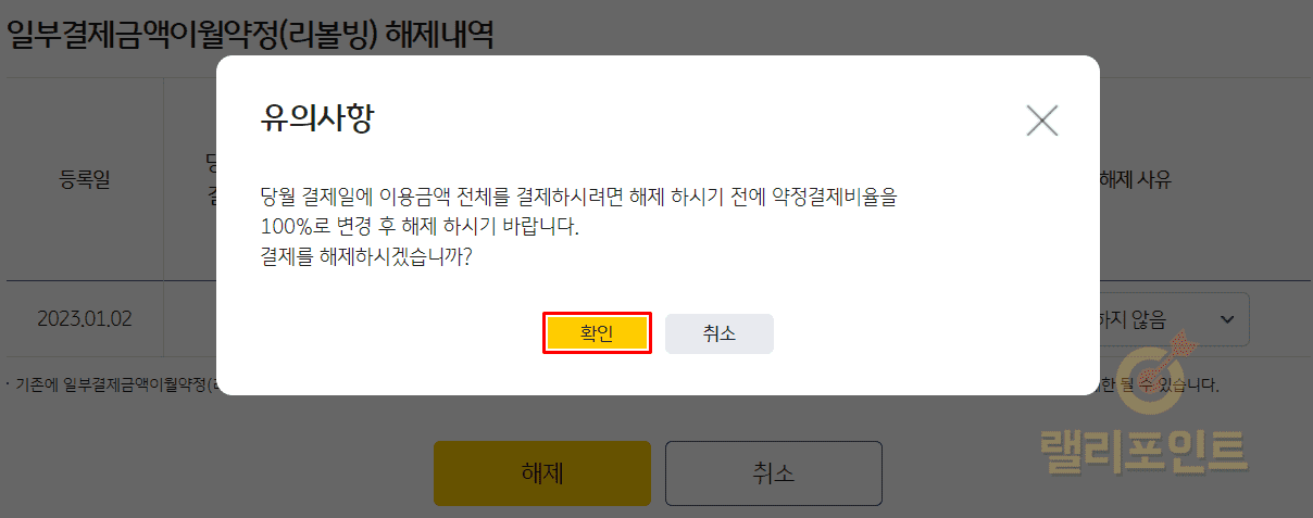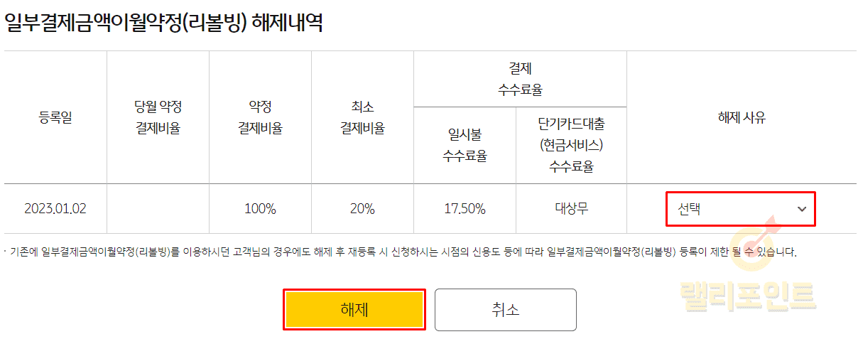 PC 국민카드 리볼빙(일부결제금액이월약정) 해지 방법