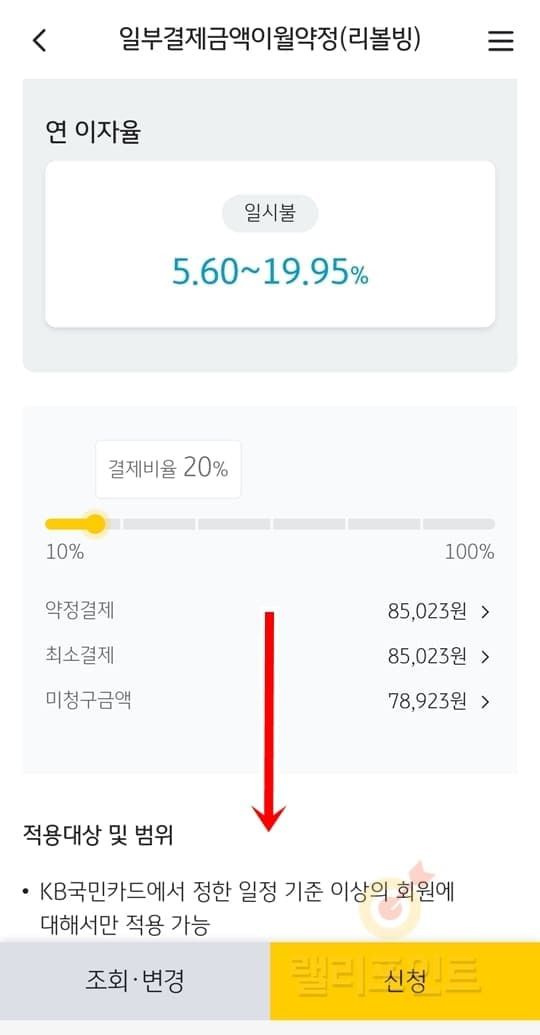 - 리볼빙 화면을 아래로 내립니다.