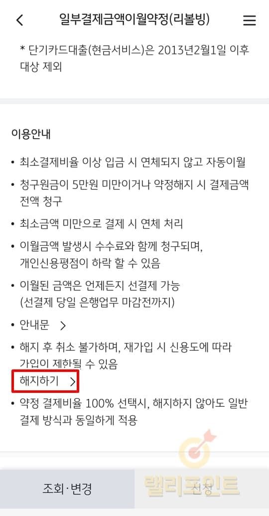 - 모바일에서 국민카드 리볼빙 해지 및 신청 방법