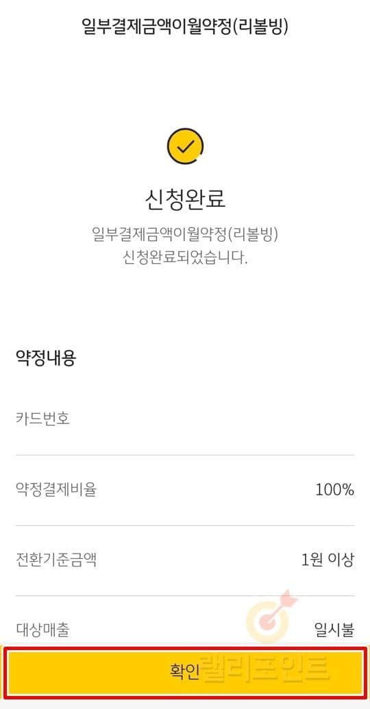 - 국민카드 리볼빙 신청이 완료되었습니다.