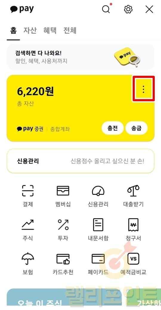 1. 나의 페이잔액 박스에서 더보기 버튼을 누릅니다.