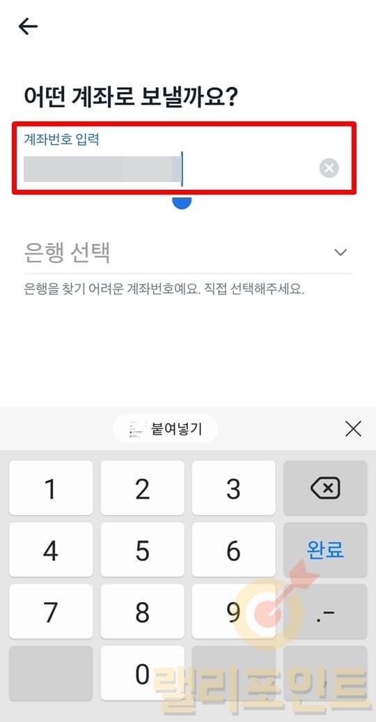 1. 카톡에서 확인했던 나의 카카오페이 계좌번호를 입력합니다.