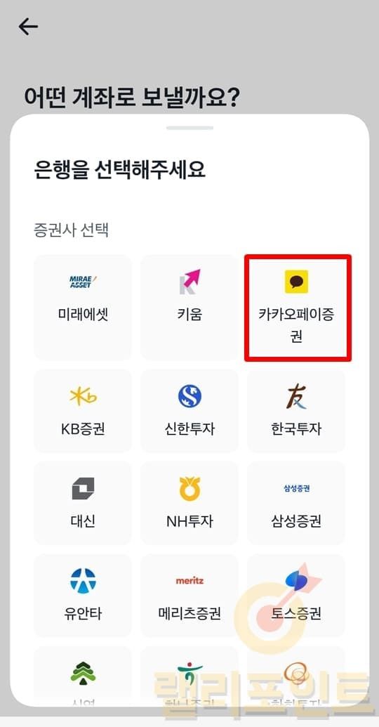 1. 은행선택에서 카카오페이증권을 선택합니다.