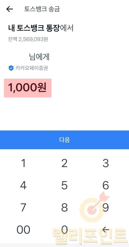1. 토스에서 카카오페이로 송금할 금액을 입력합니다.