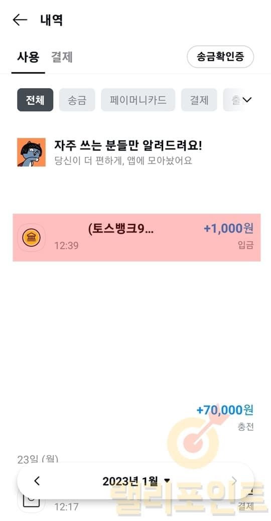 1. 토스에서 카카오페이 계좌로 돈이 송금됩니다.