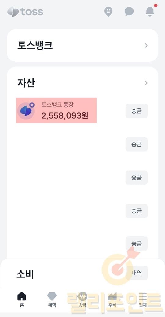 1. 나의 토스뱅크 통장을 클릭합니다.