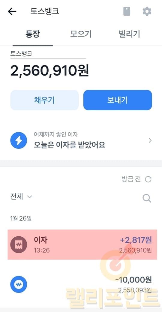 토스뱅크 통장 금리 및 이자 지급일 확인 방법 (하루 이자 계산)