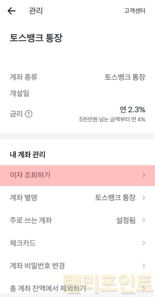 3. 나의 토스뱅크 통장 금리 이율 확인 방법