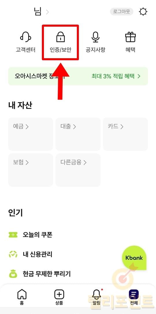 - 스마트폰에서 케이뱅크 앱을 실행합니다.