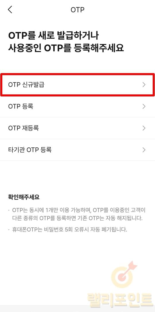 - OTP 신규발급을 누릅니다.