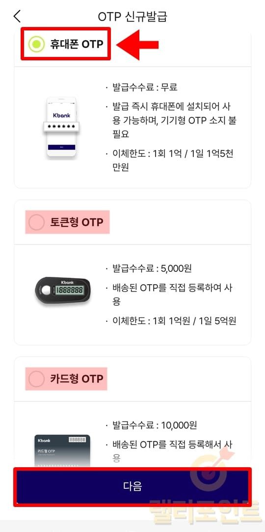 - 발급하고 싶은 케이뱅크 모바일 OTP를 선택합니다.
