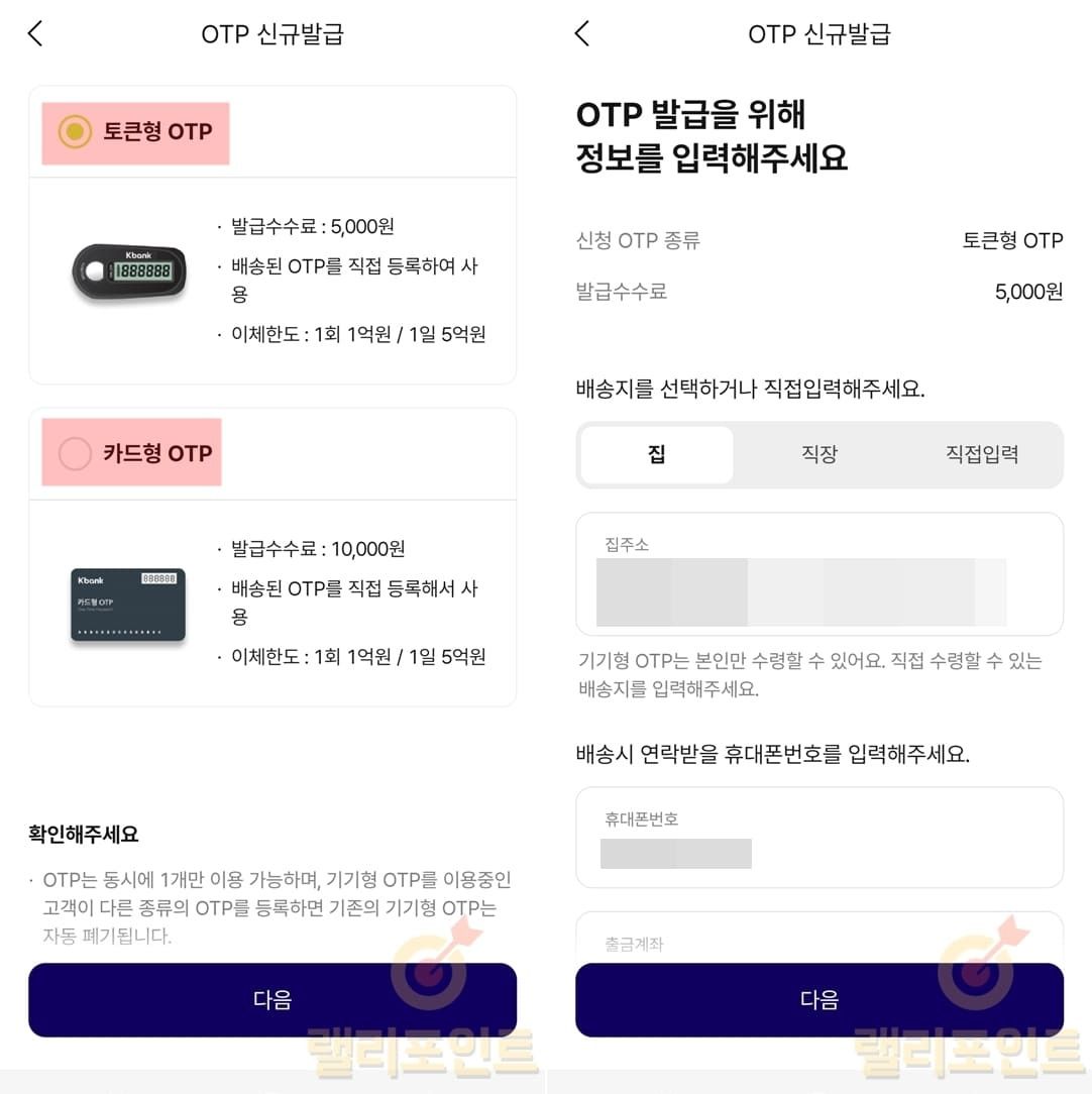 케이뱅크 모바일 OTP 발급 방법 3가지 (휴대폰, 토큰형, 카드형)