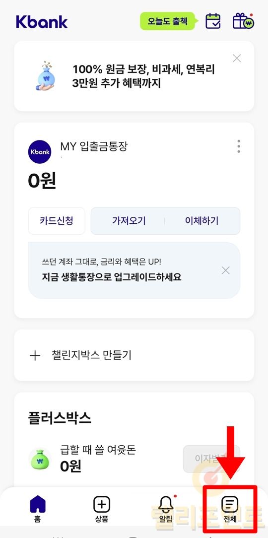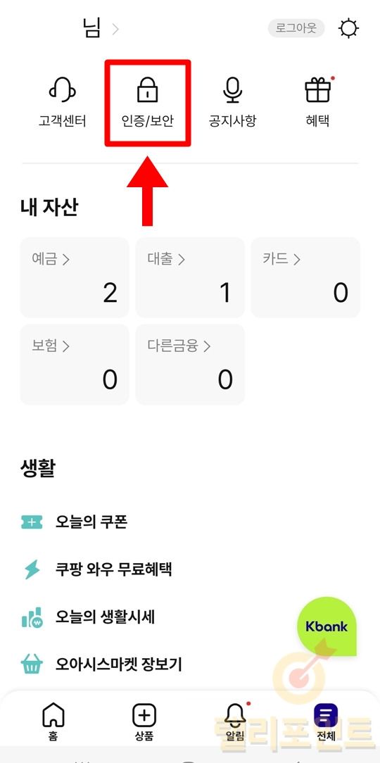 - 모바일에서 케이뱅크 앱을 실행합니다.