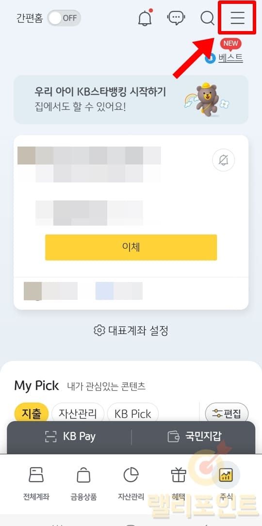 1. 스마트폰에서 KB국민은행 스타뱅킹 앱을 실행합니다.