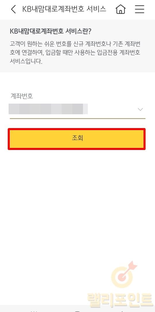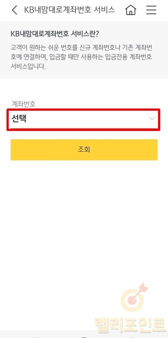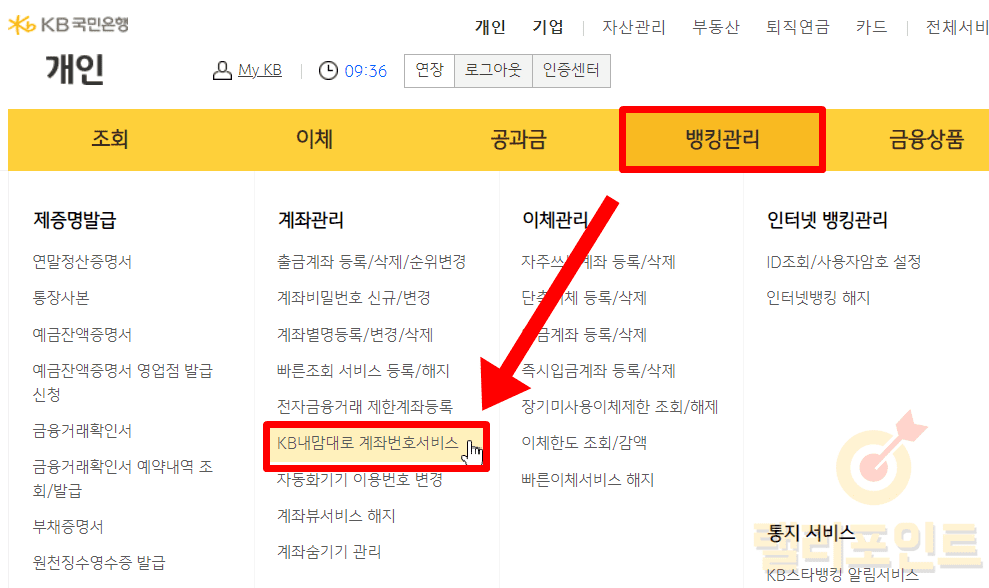 1. 뱅킹관리 > KB내맘대로 계좌번호서비스를 클릭합니다.