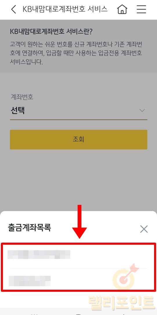 1. 평생계좌를 사용할 국민은행 계좌를 선택합니다.