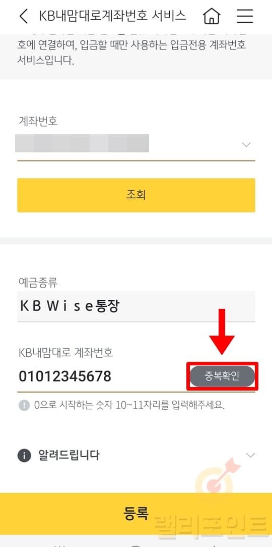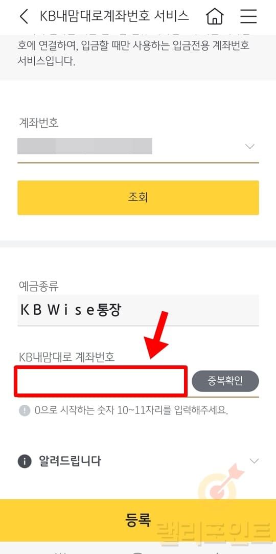 국민은행 내맘대로 계좌번호(평생계좌) 주의 사항