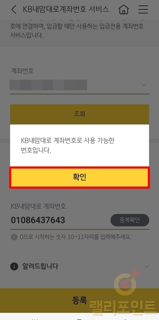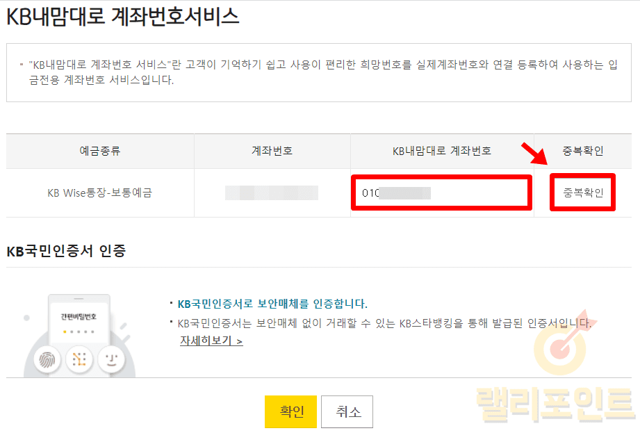 4. 국민은행 내맘대로 계좌번호(평생계좌) 주의사항