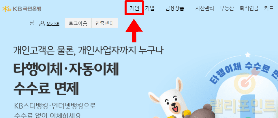 1. PC에서 국민은행 사이트를 실행 후 로그인합니다.