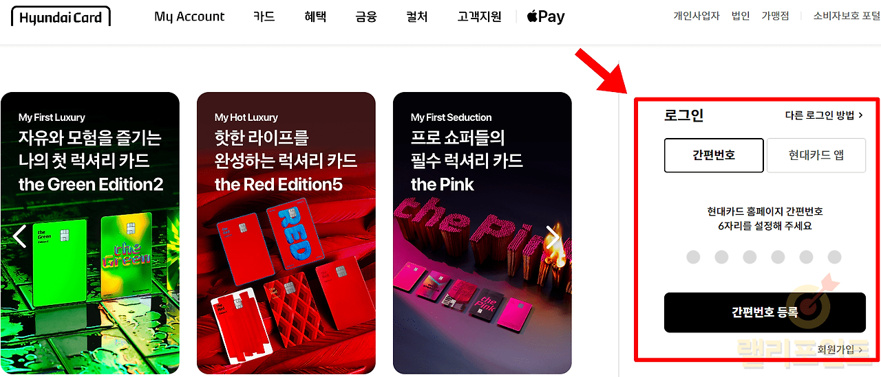 현대카드 사이트 로그인 방법으로는 간편번호, 현대카드 앱, 아이디, 인증서가 있으니 편하신 방법을 선택하여 로그인하세요.