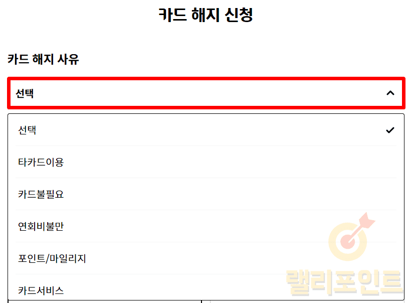 1. 카드 해지 사유를 선택합니다.