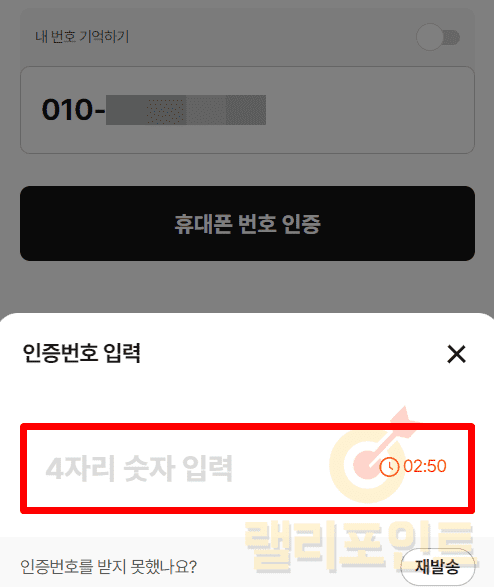 1. 문자로 수신된 인증번호를 입력합니다