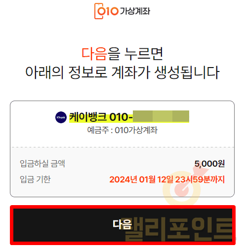 1. 계좌 생성 안내에서 다음을 누릅니다.