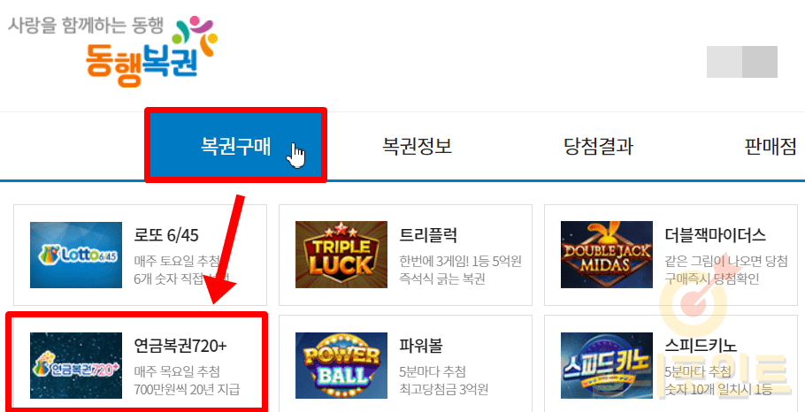 1. 복권구매 > 연금복권720+를 클릭합니다.