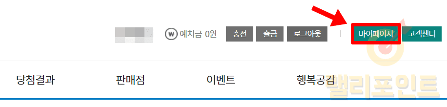 1. 동행복권 사이트에 로그인 후 마이페이지를 클릭합니다.