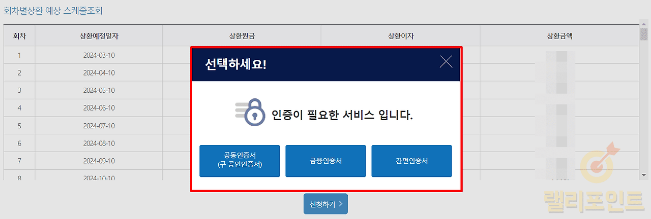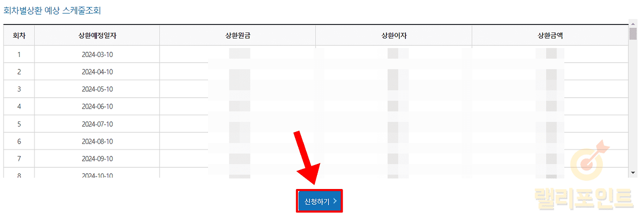 - 회차별상환 스케줄에서 신청하기를 클릭합니다.