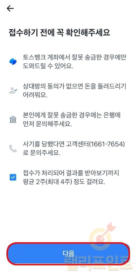 2. 토스 송금 취소 접수가 완료되었습니다.