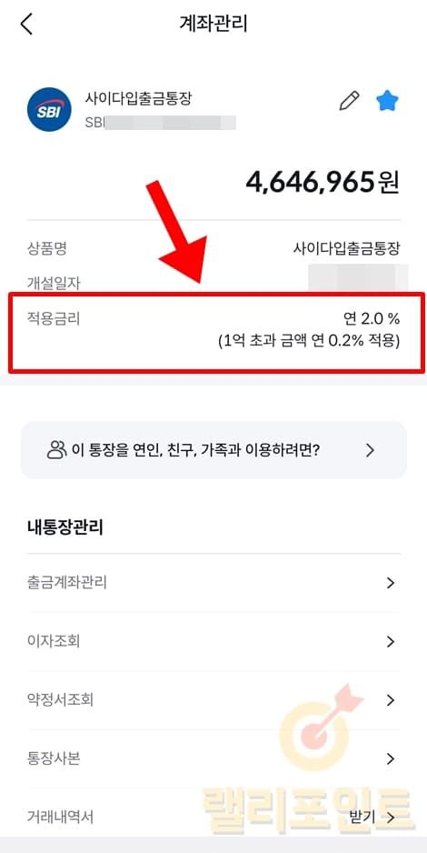 사이다뱅크 파킹통장 적용 금리 확인 방법