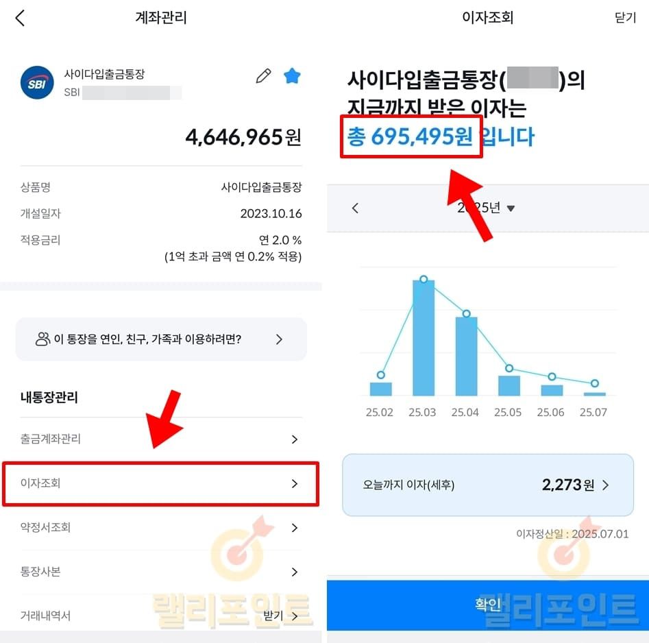 사이다뱅크 파킹통장 금리 확인 방법 (이자 계산, 지급일)