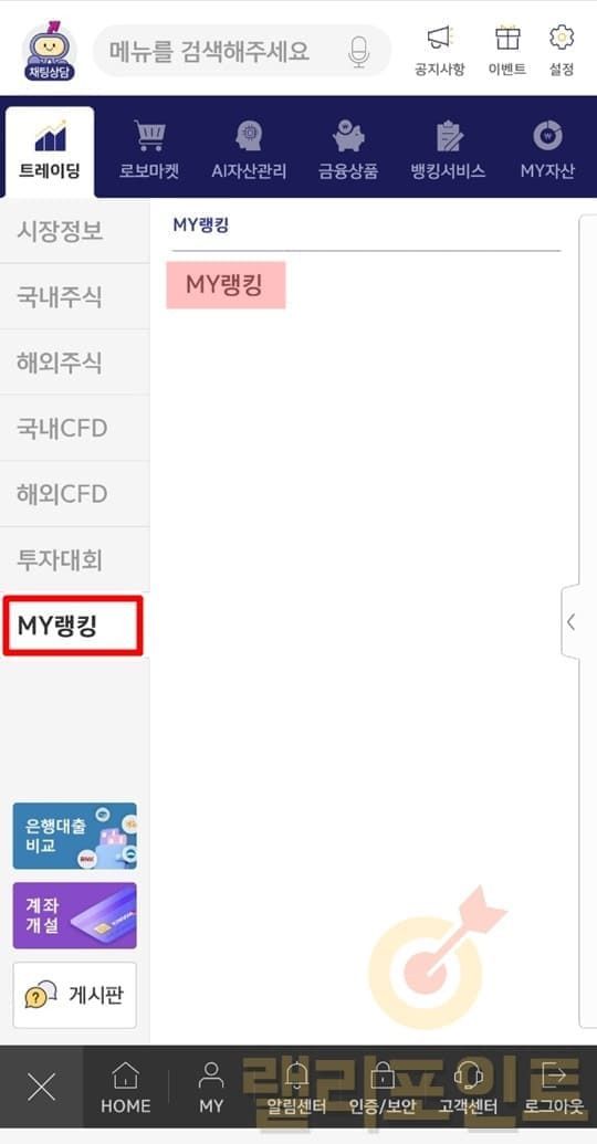 1. 나의 키움증권 수익률 MY랭킹을 확인합니다.