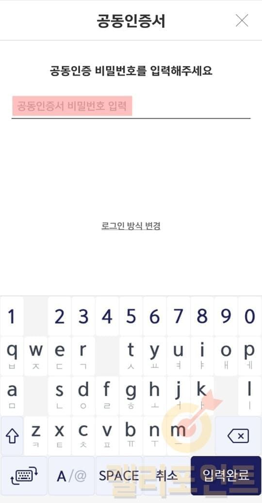 1. 공동인증서 비밀번호를 입력해서 인증합니다.