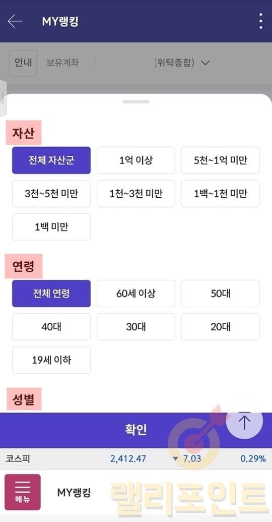 • 나와 비슷한: 성별, 나이, 자산 구분 O