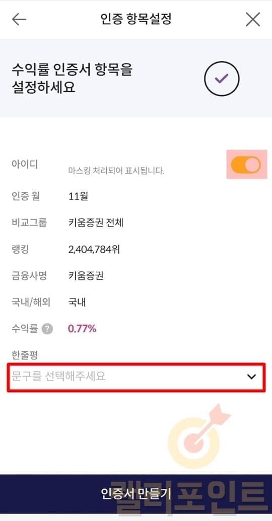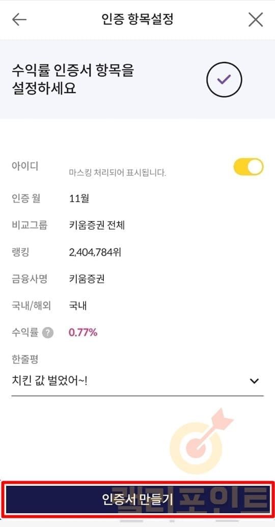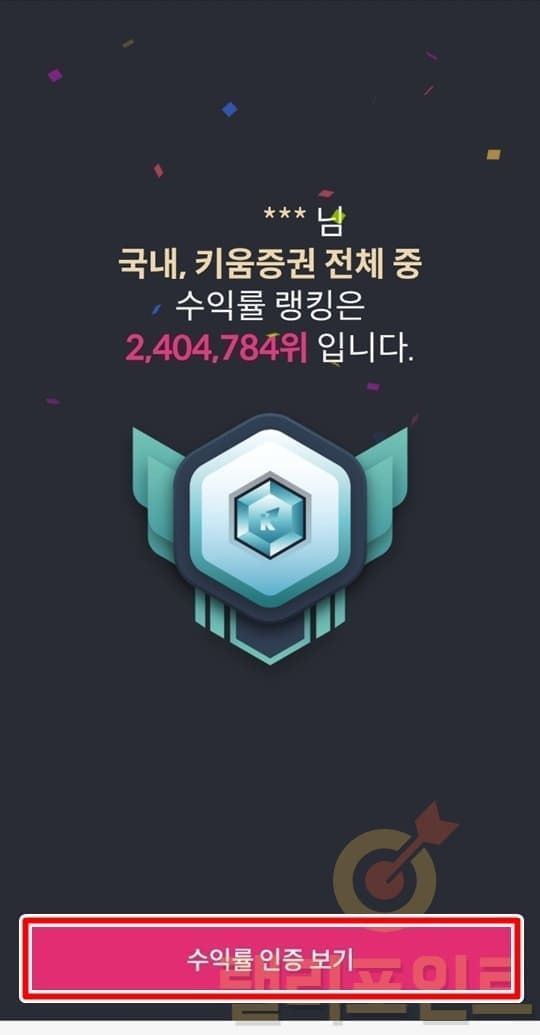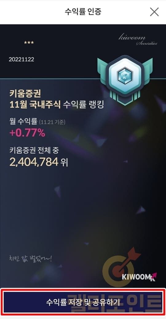 2. 키움 MY랭킹 수익률 인증화면 공유가 가능합니다.