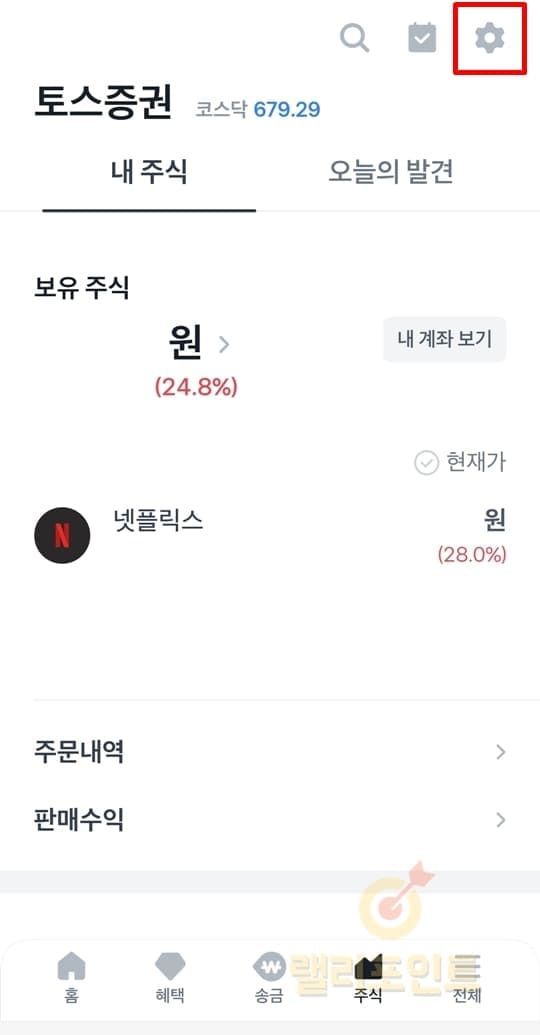 - 우측 상단의 설정 버튼을 클릭합니다.