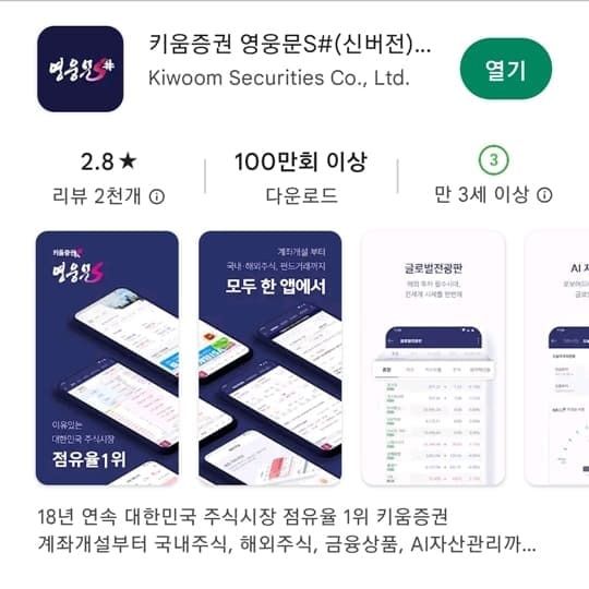1. 키움증권 영웅문S# MTS 어플을 실행합니다.