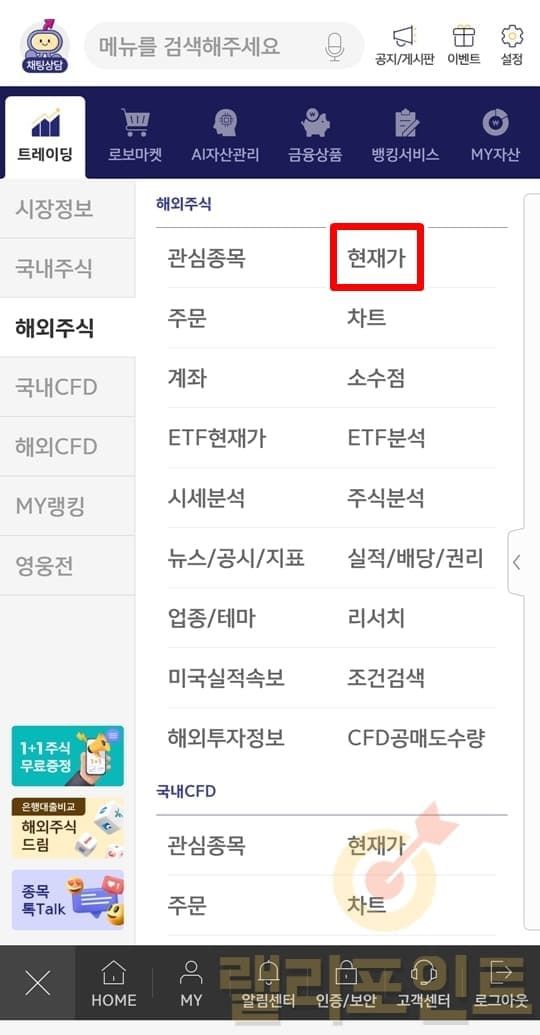 1. 해외주식 아래에서 현재가 메뉴를 클릭합니다.