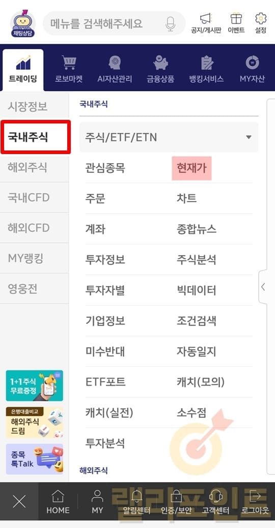 위에서 알아본대로 메뉴를 눌러서 국내주식, 해외주식 설정을 변경해줄 수 있지만 훨씬 간편하게 국내/해외 설정으로 바꿔주는 방법이 있어서 함께 소개드리도록 하겠습니다.