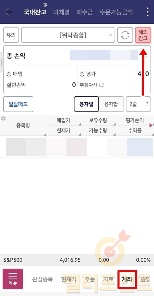 2. 영웅문S# 계좌잔고에서 해외주식 전환 방법