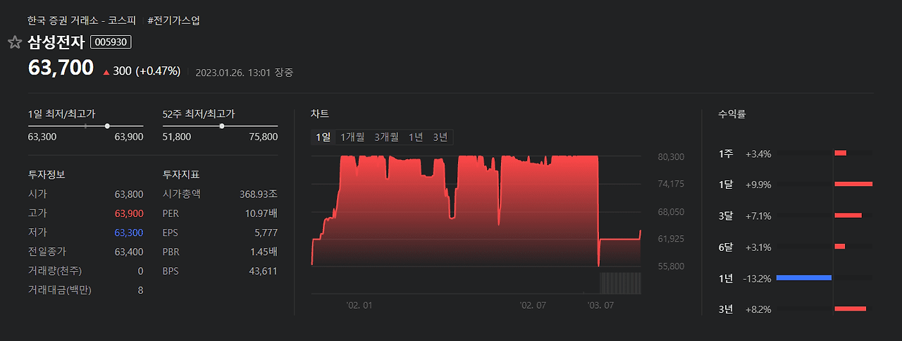한국거래소에서 지원하는 국내주식 트리맵의 경우 완성도나 투자활용도면에서 ZUM보다는 좋지 않지만 ZUM에서는 제공하지 않는 재무정보, 수익률/거래량/시가총액 구분 트리맵 표시 설정을 지원합니다. 단순 업종과 종목의 가격변동폭 외의 정보를 확인할 수 있어서 투자에 활용하기 좋습니다. -