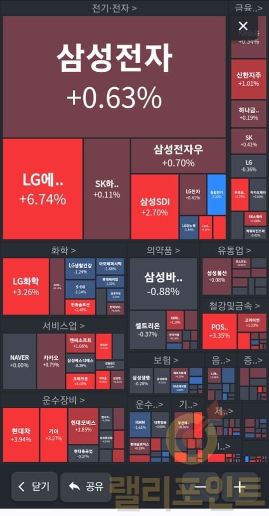 국내 주식 트리맵 지도 보는 방법 (업종별 상승/하락 체크)