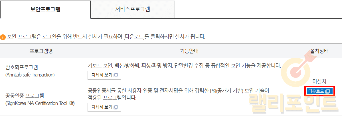 1. 보안프로그램을 다운로드 받아 설치합니다.