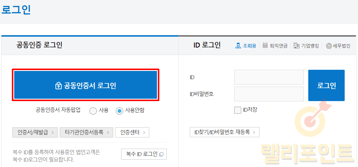 1. 공동인증서로 로그인을 선택합니다.