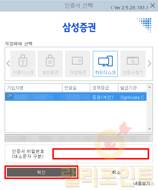 1. 인증서 비밀번호를 입력해서 로그인합니다.