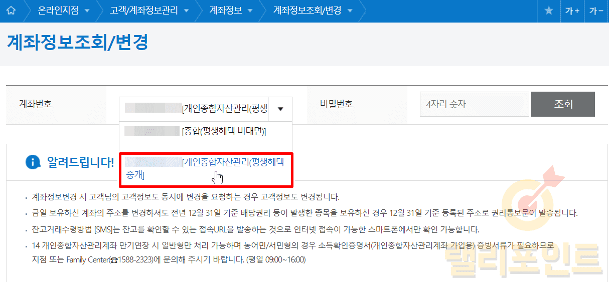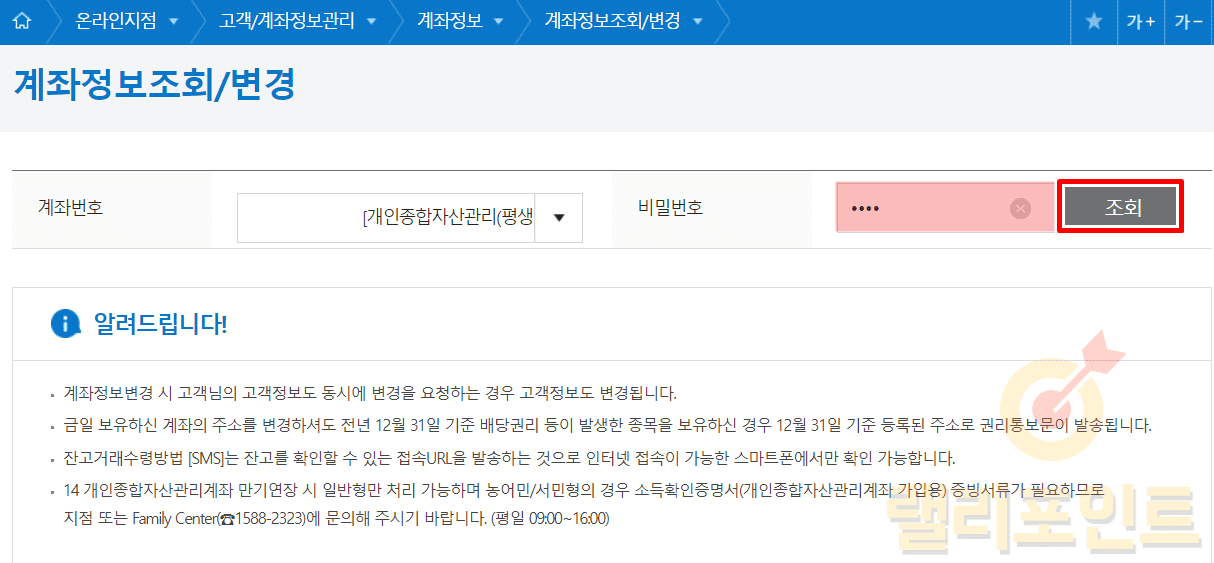 1. 계좌 비밀번호를 입력하고 조회를 클릭합니다.